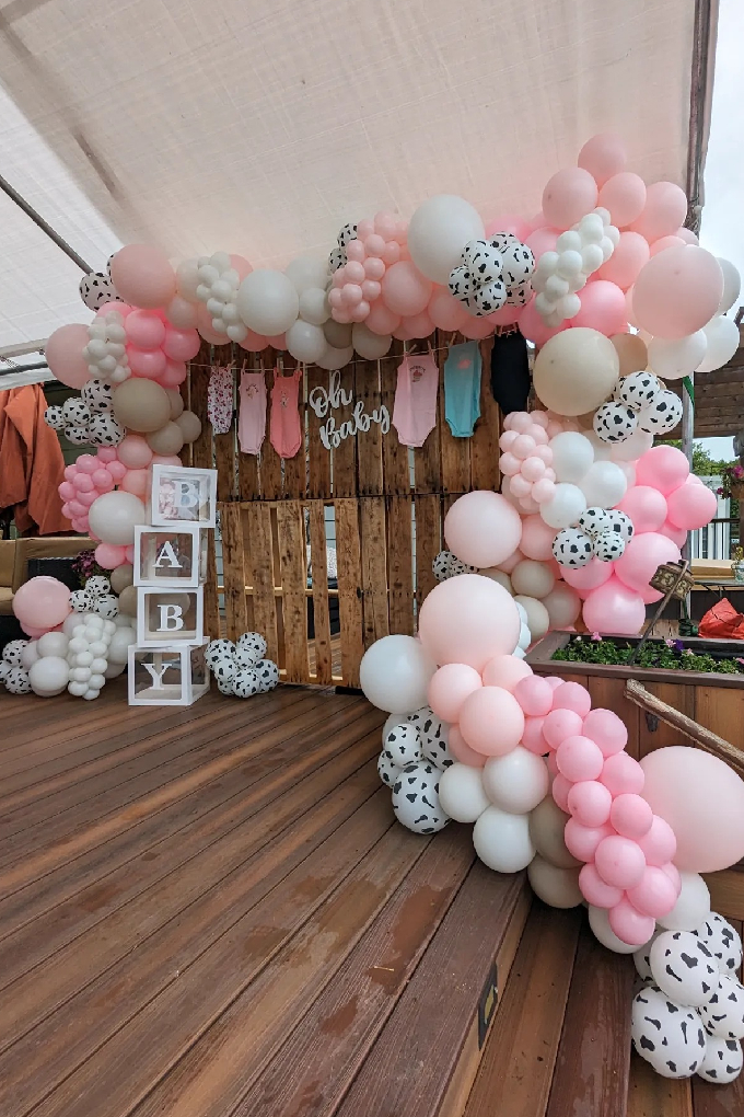 In addition to our balloon service, we also offer a wide range of party decorations, including custom backdrops and floral rentals. Our floral arrangement service is perfect for adding that extra special touch to any event, whether a wedding, anniversary or corporate event. We also offer a baby shower balloon service, where we create beautiful balloon arrangements and backdrops perfect for celebrating the arrival of a new bundle of joy.